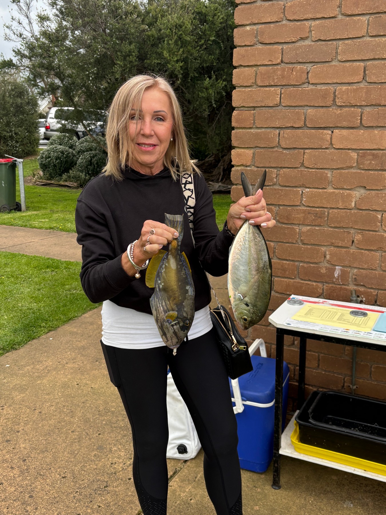 In the senior divisions, Anne-Marie Richards had a standout weekend, taking home two prizes — winning the Senior Female Points Competition with a trevally worth 1176 points (840 grams) and the Senior Female Weight Competition with a leatherjacket weighing 560 grams.